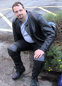 (Man beachte den "frischen" Ausdruck im Gesicht des völlig in Leder gehüllten Herren rechts!)